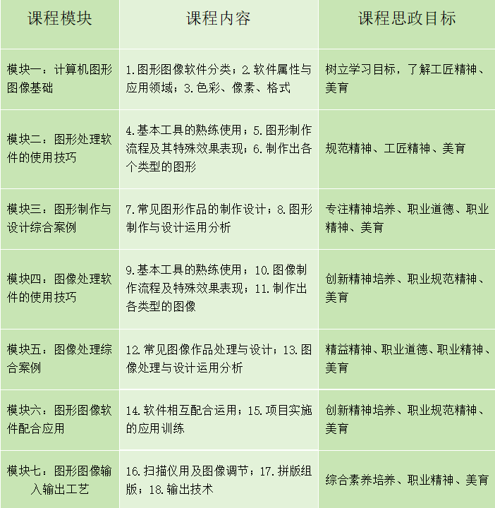 (一)坚持立德树人,融入课程思政教育1.课程坚持立德树人,强化思想政治教育与课程内容融合。计算机图形图像处理与应用在线课程坚持立德树人,注重德技并修、育训结合,围绕思政目标,确立模块化的思政设计思路,设置社会主义核心价值观、经典红色故事、大好河山、使命...