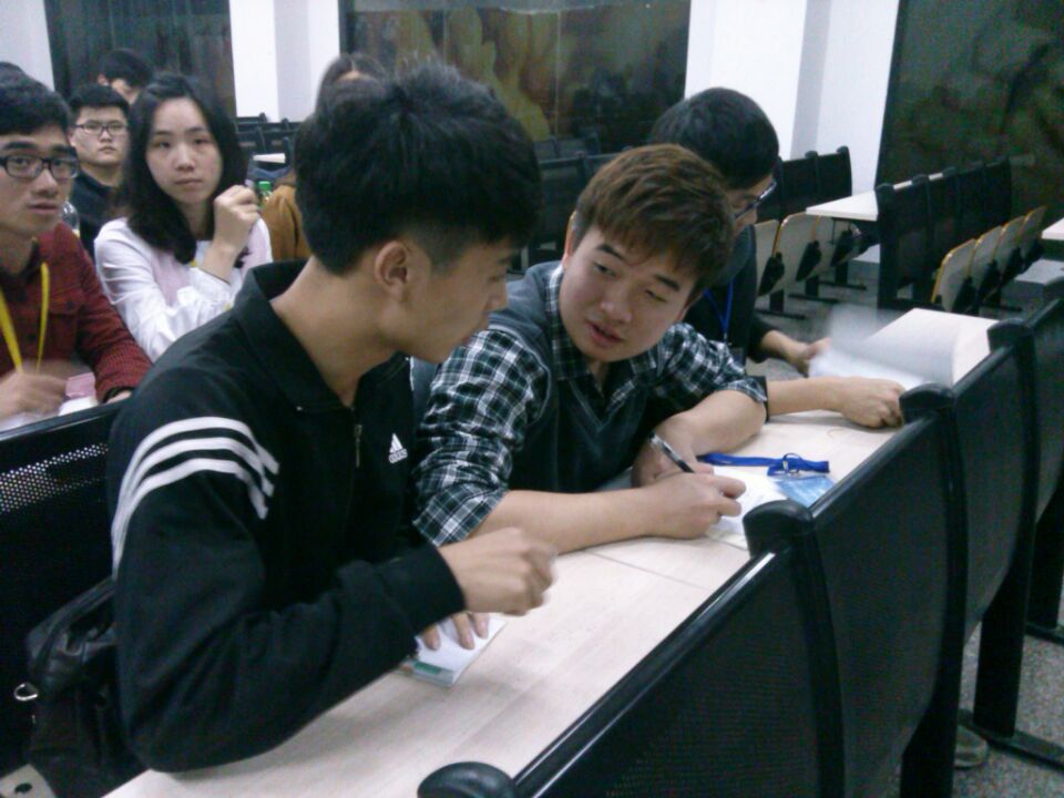 记录员在认真的记录侯选人的表现。