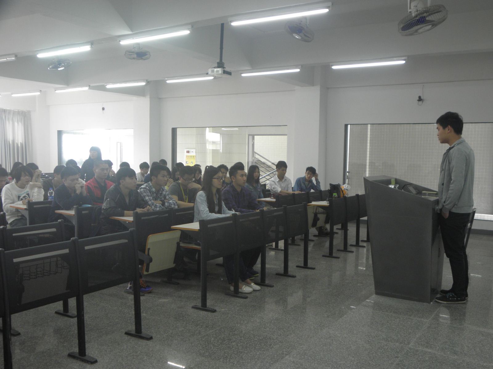 同学们在认真听侯选人发言。