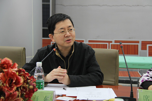 (图为:广东省教育厅研究院李海东主任主持报告会并指导工作)