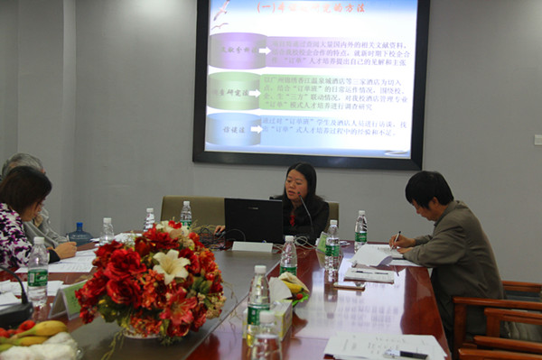 (本网讯)11月19日上午,我院在行政楼四楼会议室举行了2013年省级课题开题报告会,省教育厅研究院李海东主任、席春玲副研究员、学院科研处处长何秀成教授、管理系主任郭开仲教授和汽车工程系主任海鹏洲教授等组成评审专家组,专家组组长李海东博士主持了报告会。