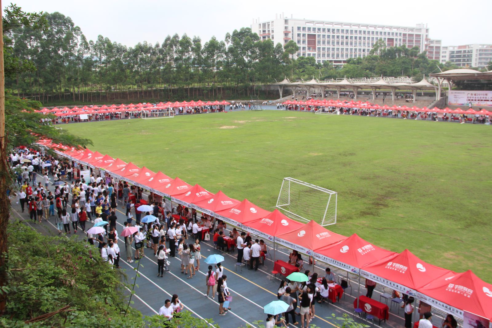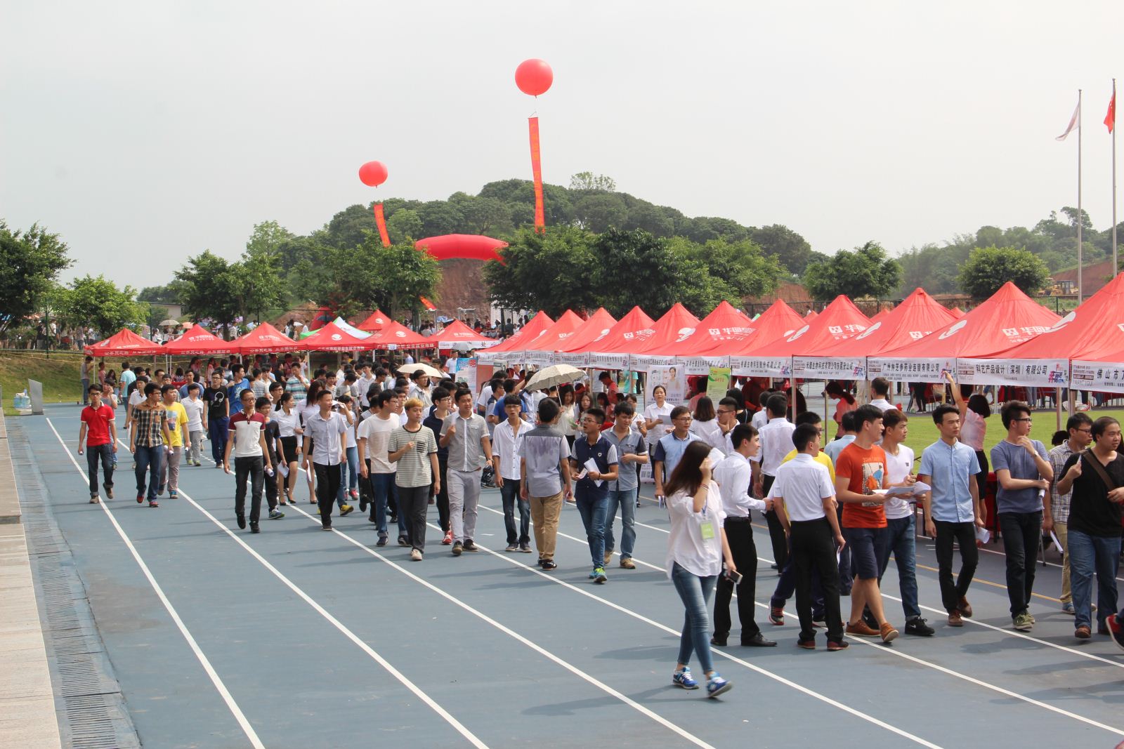 5月28日,由广东省教育厅主办、广州科技职业技术学院和广东省高等学校毕业生促进会联合承办的“广东省2015届毕业生就业供需见面会(从化地区专场)在我院田径场上举行。