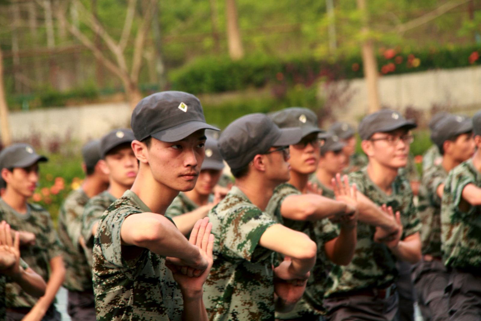 虽然炎热的天气每一分钟都在蒸发消耗着新生们体内的水分与体力,但他们每一声呐喊都变得比上一声更有力,每一次挥拳都比上一次更标准,每一次转身都露出更为犀利的眼神,他们的灵魂在军体拳的淬炼下变得愈发纯粹而坚毅,每一次跌倒后爬起都使得他们变得更像一名勇敢的战士。