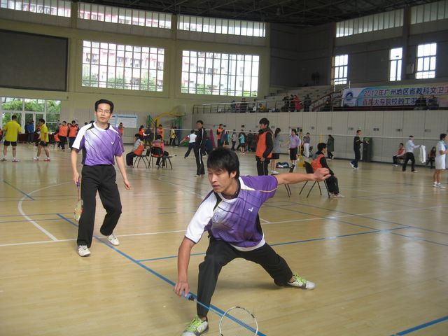 本次羽毛球赛共有10所大专院校的教职工队参加,虽为业余选手,却不乏高手,而且年龄差距也较大。特别有看点的是,各校都有校领导参加。这是贯彻本次广州地区大专院校片工会主席联席会议决定:为推动群众性体育活动的开展,要求本次比赛必须有校领导参加,并规定无校领导参加的队伍不得进入冠亚军决赛。以通过领导带头参加文体活动,带动更多的教职工参加体育锻炼,提高身体素质。将领导重视教职工文体活动的“考核”纳入比赛活动中,不失为更好地落实国务院《全民健身计划(2011-2015年)》的一项创新机制。