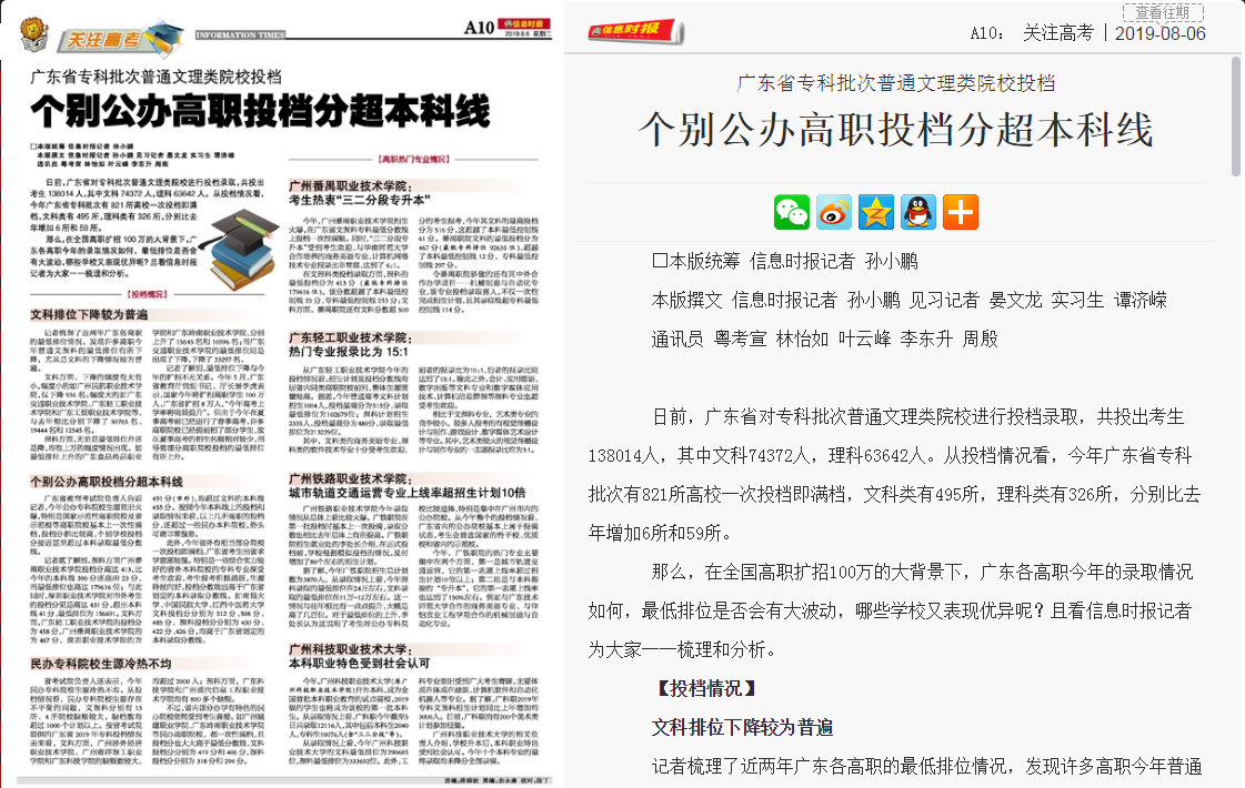 日前,广东省对专科批次普通文理类院校进行投档录取,共投出考生138014人,其中文科74372人,理科63642人。从投档情况看,今年广东省专科批次有821所高校一次投档即满档,文科类有495所,理科类有326所,分别比去年增加6所和59所。