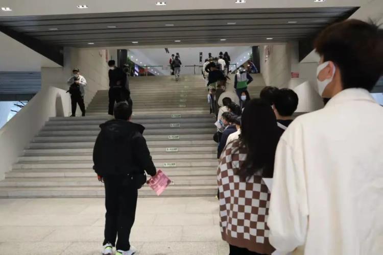 接种现场师生有序排队 等候入场