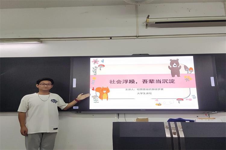 本次大学生讲坛是由20校团委组织部徐梦豪同学所带来的主题是“社会浮躁,吾辈当沉淀”,讲坛时间为2022月4月11日。