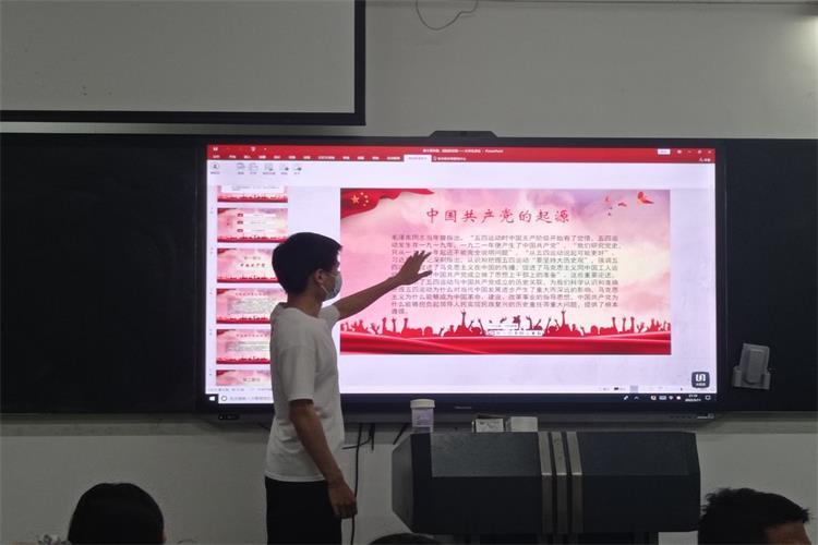 赵志君同学把演讲内容分为三大部分,分别是“中国共产党”、“党的奋斗一百年”和“青年启航新征程”。赵志君同学先与同学们分享了中国共产党的起源与性质,从中国共产党的起源与性质阐述了中国共产党取得的辉煌成就。接着概括式地列举中国共产党奋斗一百年的成就,向同学们展示党的百年功绩。最后,引用习近平总书记对当代青年的肯定和殷切希望,呼吁同学们立足当下,着眼未来,心怀人民,不断完善自身,为成为一名共产党员而不停奋斗,为人民福祉而不屑努力,做共产主义的光荣的接班人。