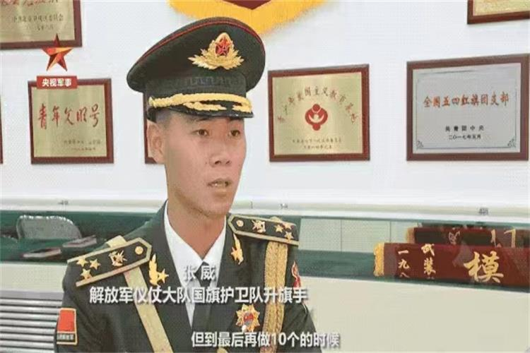 以青春践行使命,以奋斗诠释担当。因为梦想、传承选择奔赴军营的张威。在2015年,一次国旗护卫队爱国主义教育活动的经历,让17岁的张威梦想成为天安门广场上的旗手。三年后张威参军入伍,2019年他如愿加入解放军仪仗大队国旗护卫队,因表现优异获得练习升旗手的资格,每天手托至少10斤重的哑铃连续练习三百次以上,每天完成日常训练后扛一根30斤重的旗杆单独加练。