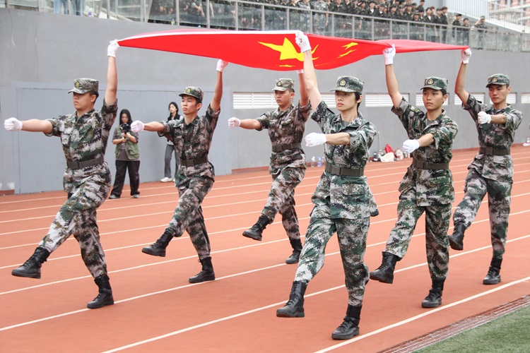 2024级新生军训成果汇报暨总结表彰大会在庄严的国歌声中缓缓拉开帷幕,国旗护卫队英姿飒爽,迈着整齐划一的步伐,护卫着鲜艳的国旗入场。分列式展示环节紧随其后,各方阵列队整齐,步伐铿锵有力,口号嘹亮坚定,淋漓尽致地展现出学子们蓬勃向上的风采和严明的纪律性。
