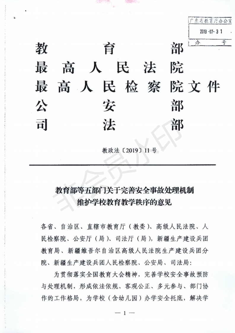 广东省教育厅等五部门转发《教育部等五部门关于完善安全事故处理机制维护学校教育教学秩序的意见》的通知